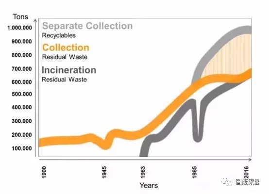 1960 年左右,二戰(zhàn)后的維也納經濟復蘇,伴隨著人口增長,加上包裝行業(yè)新起,垃圾數量迅速增長。也是在那個時間段,維也納開始焚燒垃圾,并且在 1980 年代開始將垃圾區(qū)分為可回收和不可回收。此后垃圾數量有增無減,直到2016年才相對穩(wěn)定。