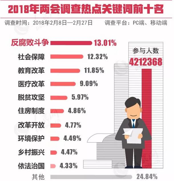 2018年3月,全國(guó)兩會(huì)將在北京召開,網(wǎng)民最關(guān)心什么?有哪些期待?而隨著環(huán)保政策的頻繁出臺(tái),人民對(duì)碧海藍(lán)天的渴望更加強(qiáng)烈,環(huán)境保護(hù)問題也愈發(fā)引起人民的關(guān)注。人民網(wǎng)推出的兩會(huì)熱點(diǎn)調(diào)查中,“環(huán)境保護(hù)”進(jìn)入前十名榜單,成為備受關(guān)注的熱點(diǎn)問題,而且其于2014-2018年五次上榜。