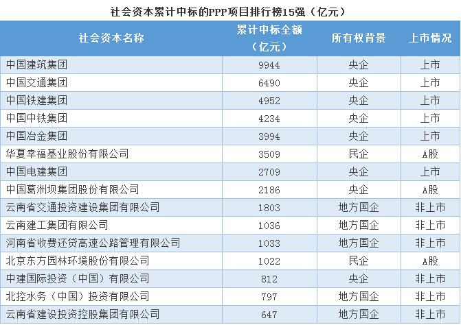 民營(yíng)企業(yè)累計(jì)中標(biāo)PPP項(xiàng)目15強(qiáng)分析