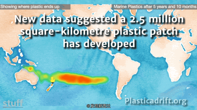 在新西蘭北島東部的南太平洋上,有一個(gè)海洋垃圾島,面積相當(dāng)于4個(gè)新西蘭國(guó)土的大小!