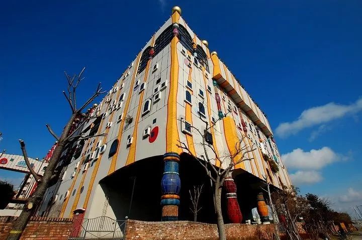 “舞洲工場”的外觀設計出自奧地利著名生態(tài)建筑設計師Friedensreich Hundertwasse。鮮艷的色塊使得這座垃圾廠色彩斑斕,不再給人以冷冰冰的感覺,建筑物外表面紅色與黃色的條紋象征著處理廠的火焰。工廠有著五百多個形狀各異的窗戶,其中八成是用作裝飾。整個建筑被綠植包圍,曲線的建筑設計與植被相映成趣,體現(xiàn)了舞洲垃圾處理廠“融技術、生態(tài)、藝術為一體”的口號。