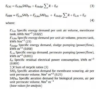 對(duì)于經(jīng)典活性污泥法和MBR工藝來(lái)說(shuō),SED主要貢獻(xiàn)因子是曝氣,除了用于給生物質(zhì)提供氧氣之外,對(duì)于MBR,還用于膜的沖洗。