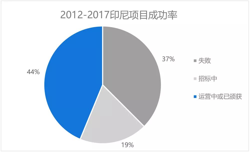 根據(jù)宇墨不完全統(tǒng)計,不包括還在策劃中項目,印尼從2012年至2017年的環(huán)保PPP項目成功率是44%。雖然成功,也必須了解許多項目在頒獲前也可能有長達至少4年的延誤,例如Umbulan水供給項目從策劃到頒獲就用了4年(2012-2016年),項目目前也還在建設當中,預計2019年開始運營。那你可能也在猜測失敗的項目怎么了?失敗項目在印尼有很多時候都會轉移給印尼國企負責,2013年Maros水供給項目就是如此。據(jù)了解,項目交移給國企原因是當?shù)卣椭醒胝念A期不能夠符合,導致當?shù)卣畬幵赴秧椖哭D移給當?shù)貒筘撠?。也有很多時候失敗的項目在宣布后不知不覺中毫無音訊,之后就沒人提起,也只有參與策劃的人員會知道實情。根據(jù)業(yè)內人士透露,雖然沒有官方數(shù)據(jù),印尼基建項目的總成功率可能只有10%左右。如果有選擇,印尼政府必定希望PPP項目可以由私人企業(yè)投資,畢竟印尼國企也已經(jīng)負債累累,7家基礎建設相關國企的總債務就有美金900億,一年有60%增長。