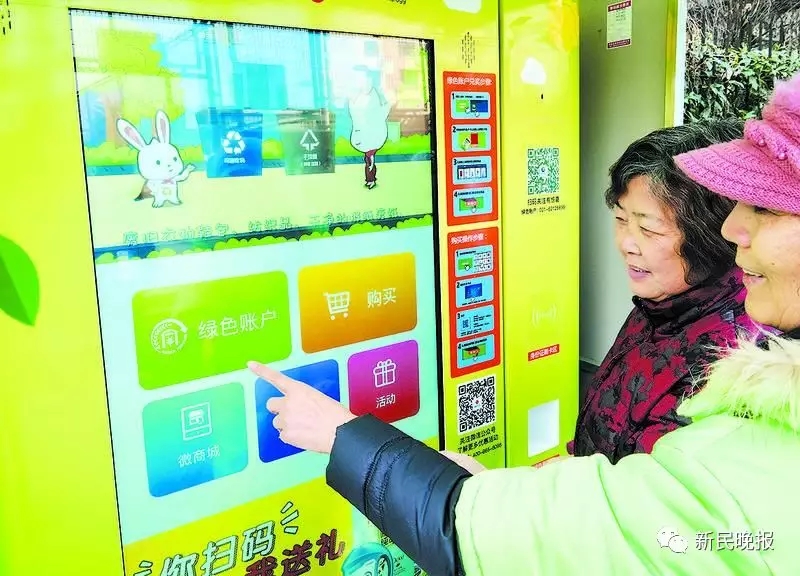“綠色賬戶積分兌換機”前,上海居民用積分兌換禮品。新民晚報圖