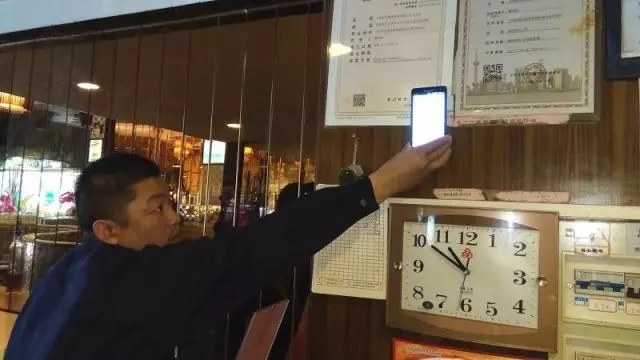 ③ 收運(yùn)員要打開手機(jī)內(nèi)的專用軟件,掃描收運(yùn)對象店堂內(nèi)的二維碼,記入具體信息,才能去下一站,以防中間環(huán)節(jié)有人“玩貓膩”——一些沒有被記錄的“地溝油”偷偷進(jìn)入了非正規(guī)環(huán)節(jié)。