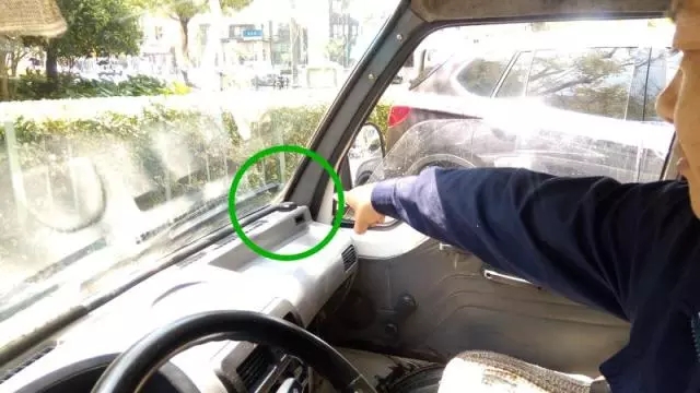 ⑤ 收運(yùn)車駕駛室內(nèi),司機(jī)將GPS裝置指給記者看,每天“地溝油”的物流都在監(jiān)控下運(yùn)行。