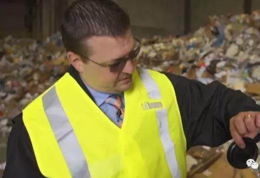 McKay用一個(gè)大耙子從垃圾堆里將不可回收的物品扒出來, 其中包括一個(gè)裝有狗糧的袋子以及一個(gè)印有可回收字樣的黑色塑料咖啡杯蓋, "無論從外觀、手感還是標(biāo)識(shí)看, 它都是可回收垃圾,然而它不是!"