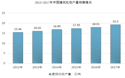 2017年我國(guó)建筑垃圾產(chǎn)生量約19.3億噸,每噸建筑垃圾的運(yùn)輸與處置費(fèi)用按照35元計(jì)算,2017年我國(guó)建筑垃圾處理行業(yè)規(guī)模達(dá)到675.5億元。