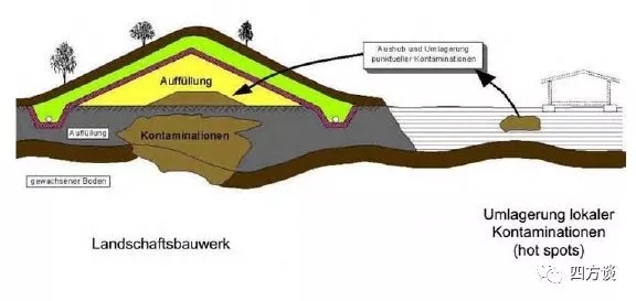 (4)鋪隔離、保護層(Abdichtung)。這種方法是通過鋪上保護層,防止污染物質(zhì)進一步擴散,避免土壤暴露在外與人直接接觸。