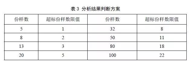 7.1在對(duì)固體廢物樣品進(jìn)行檢測(cè)后,如果檢測(cè)結(jié)果超過(guò)GB5085.1、GB5085.3、GB5085.4、GB5085.5和GB5085.6中相應(yīng)標(biāo)準(zhǔn)限值的份樣數(shù)大于或者等于表3中的超標(biāo)份樣數(shù)限值,即可判定該固體廢物具有該種危險(xiǎn)特性。