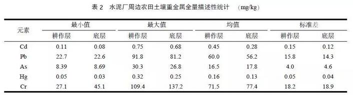 從統(tǒng)計(jì)結(jié)果來(lái)看,水泥廠周邊農(nóng)田土壤重金屬Cd 污染最為嚴(yán)重,且耕作層Cd 全量和有效態(tài)含量均高于底層土壤含量,表明該區(qū)域Cd來(lái)源為外源污染。