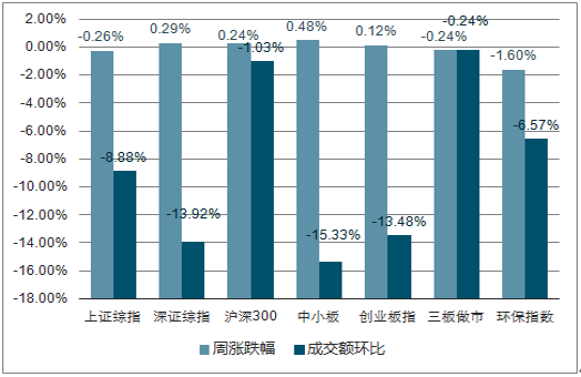周漲跌幅與成交額環(huán)比情況