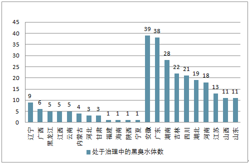 處于治理中的黑臭水體數(shù)(分省份)