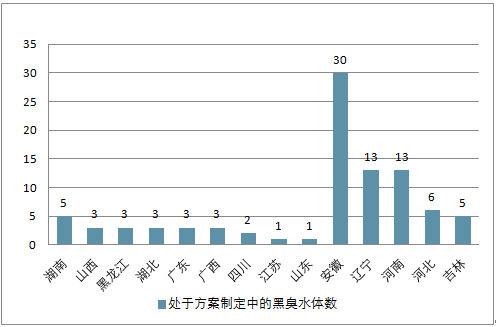 處于方案制定中的黑臭水體數(shù)(分省份)
