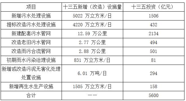 十三五城鎮(zhèn)污水處理及再生利用規(guī)劃投資額