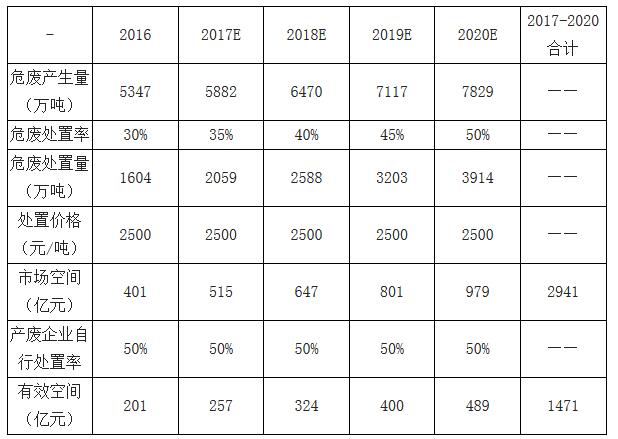 2、危廢處置市場空間分析預(yù)測