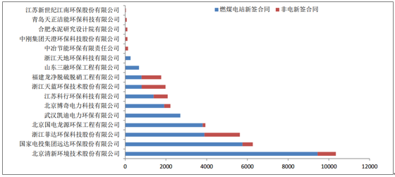 2017年度燃煤電站和非電燃煤行業(yè)新簽合同脫硝工程容量