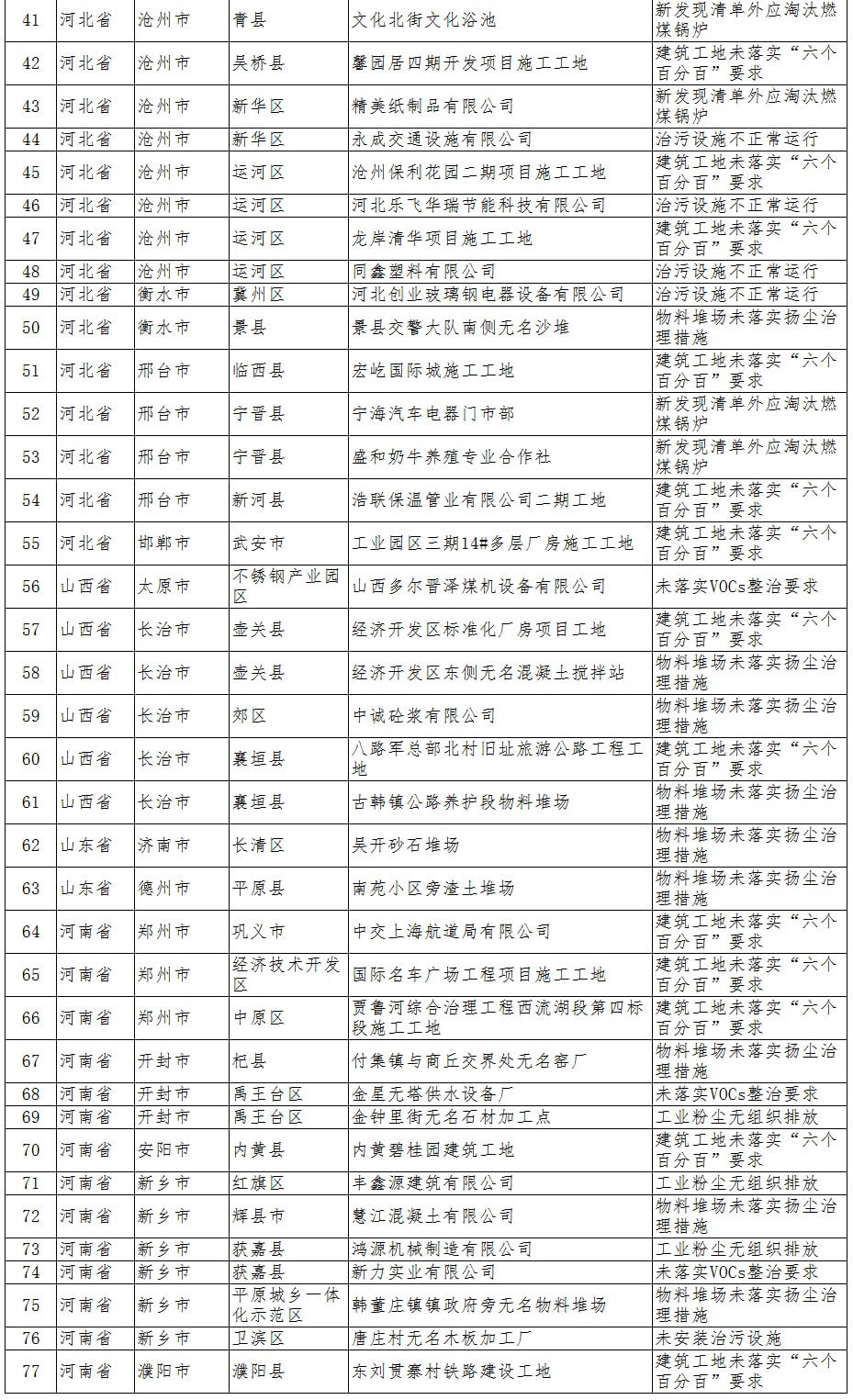 8月11日,2018-2019年藍(lán)天保衛(wèi)戰(zhàn)重點(diǎn)區(qū)域強(qiáng)化督查工作繼續(xù)開展,200個督查組按照工作方案要求,對京津冀及周邊地區(qū)204個縣(市、區(qū))進(jìn)行督查,發(fā)現(xiàn)涉氣環(huán)境問題78個(其中1家企業(yè)有2臺應(yīng)淘汰燃煤鍋爐,見附件),如下: