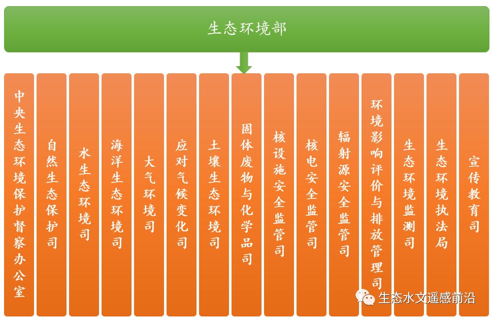 生態(tài)環(huán)境部、自然資源部、國家林業(yè)和草原局、水利部除設(shè)置辦公廳、綜合司、法規(guī)司、人事司、財(cái)務(wù)司、國際合作司、機(jī)關(guān)黨委和離退休干部辦公室等司局外,生態(tài)環(huán)境部還下設(shè)中央生態(tài)環(huán)境保護(hù)督察辦公室、自然生態(tài)保護(hù)司(生物多樣性保護(hù)辦公室、國家生物安全管理辦公室)、水生態(tài)環(huán)境司、海洋生態(tài)環(huán)境司、大氣環(huán)境司(京津冀及周邊地區(qū)大氣環(huán)境管理局)、應(yīng)對氣候變化司、土壤生態(tài)環(huán)境司、固體廢物與化學(xué)品司、核設(shè)施安全監(jiān)管司、核電安全監(jiān)管司、輻射源安全監(jiān)管司、環(huán)境影響評價(jià)與排放管理司、生態(tài)環(huán)境監(jiān)測司、生態(tài)環(huán)境執(zhí)法局、宣傳教育司等機(jī)構(gòu)。