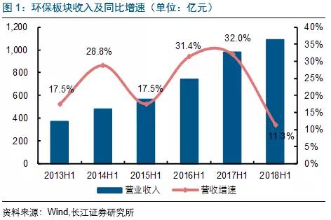 2018H1營(yíng)收1,086億,同比增11.3%;扣非歸母凈利95.7億,同比降16.5%;毛利率同比降0.3pct至29.2%。扣非歸母凈利增速排序?yàn)楣虖U(25.7%)、監(jiān)測(cè)&檢測(cè)(14.1%)、水(工程設(shè)備)(5.7%)、水務(wù)運(yùn)營(yíng)(-11.3%)、大氣(-19.6%)、節(jié)能(-82%)。2018Q2板塊營(yíng)收604億,同比增7.8%;扣非歸母凈利63.9億,同比降12.3%;毛利率同比降0.6pct至29.5%。