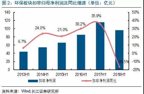3)水(工程設(shè)備)板塊:今年以來(lái)民企融資難度加大,作為PPP屬性較強(qiáng)的板塊,融資難成為該行業(yè)企業(yè)發(fā)展的最大障礙,以東方園林為代表的龍頭企業(yè)也出現(xiàn)類似問(wèn)題,該板塊2018Q2營(yíng)收及歸母凈利潤(rùn)出現(xiàn)大幅下滑。