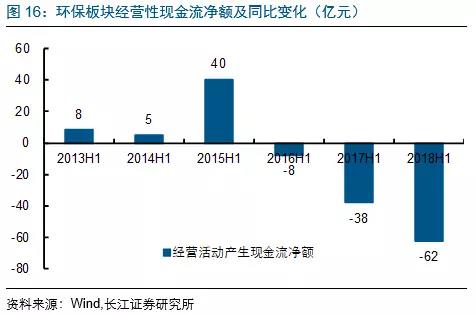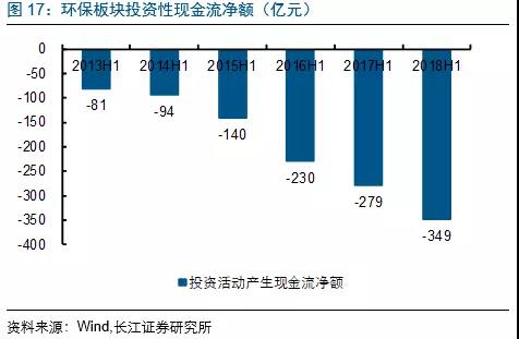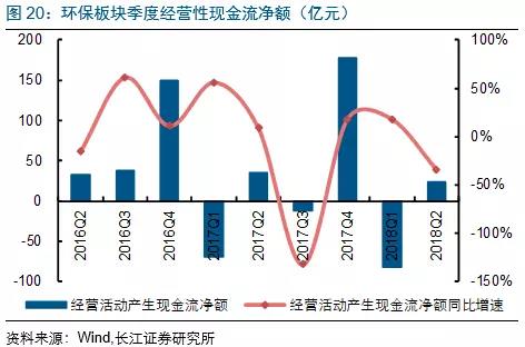 2018H1固廢板塊經(jīng)營(yíng)活動(dòng)產(chǎn)生現(xiàn)金流凈額改善較多,主要受益于中再資環(huán)(補(bǔ)貼款回款增加,由-5.5億到3.2億)、東江環(huán)保(議價(jià)能力提升,回款加速,同時(shí)預(yù)收款增加較快,由0.9億到3億)、格林美(由1億到4.2億)經(jīng)營(yíng)現(xiàn)金流凈額改善明顯;節(jié)能板塊下滑較大主要受到三聚環(huán)保(-20.4億到-32.3億)、神霧環(huán)保(由0.7億到-3.9億)、神霧節(jié)能(由3.4億到-0.8億)經(jīng)營(yíng)現(xiàn)金流凈額惡化較快的影響。水(工程設(shè)備)板塊經(jīng)營(yíng)活動(dòng)現(xiàn)金流凈額繼續(xù)走低,主要受到碧水源(由-7億到-13.6億)及天翔環(huán)境(由0.5億到-9.7億)的影響。