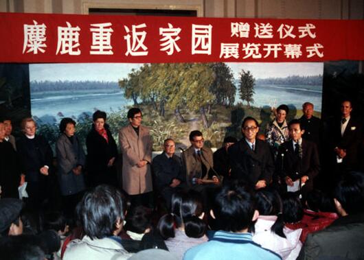 1985年11月,英國塔維斯托克家族向中國贈送麋鹿。麋鹿原為中國特有物種,一度消失,英國塔維斯托克家族曾在19世紀(jì)末期將麋鹿從中國帶回英國飼養(yǎng)。經(jīng)磋商后,該家族于1985年送麋鹿回家。受訪者供圖