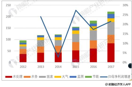 2012-2017年環(huán)保板塊營業(yè)收入、母凈利潤統(tǒng)計(jì)及增長情況