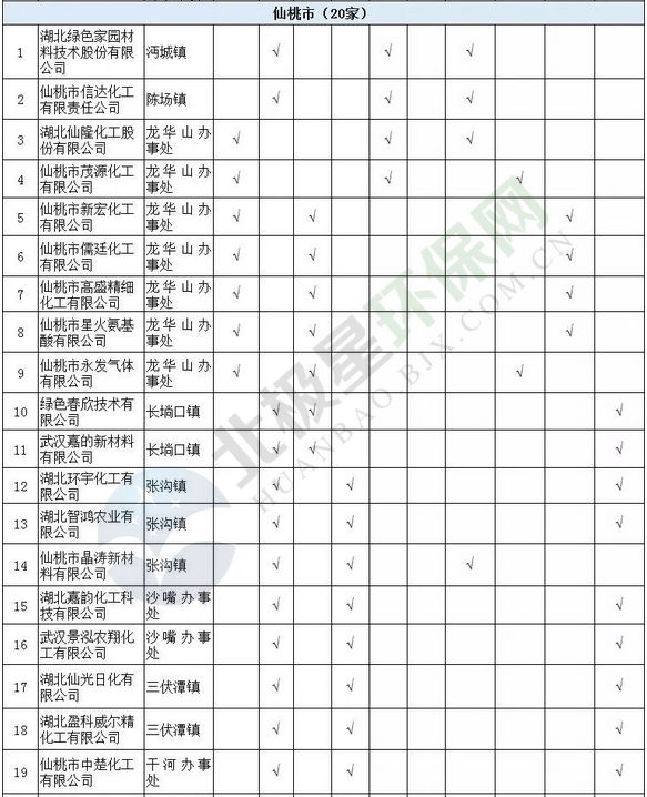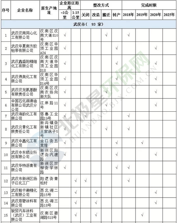日前湖北省經(jīng)信委發(fā)布了關于《湖北省沿江化工企業(yè)關改搬轉任務清單(征求意見稿)》公示,其中涉及湖北省沿江化工企業(yè)總計497家。公示期為2018年9月30日至10月11日。其中,武漢市( 93家 )、襄陽市( 21家 )、宜昌市( 86 家)、十堰市( 21家)、荊州市(81家)、黃石市(16家)、荊門市(56家)、鄂州市(14家)、孝感市(8家)、黃岡市(38家)、咸寧市(8家)、恩施州(4家)、仙桃市(20家)、天門市(9家)、潛江市(22家)。
