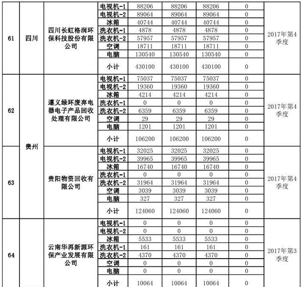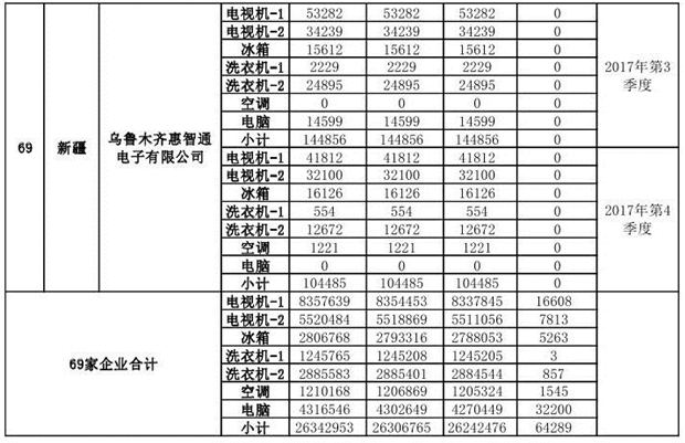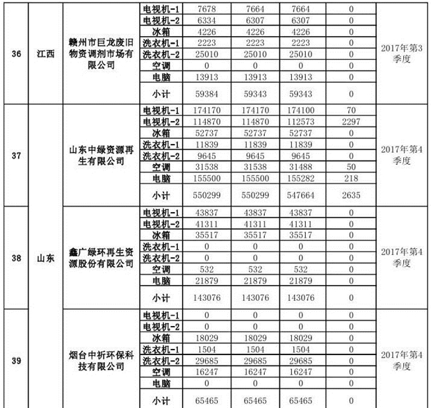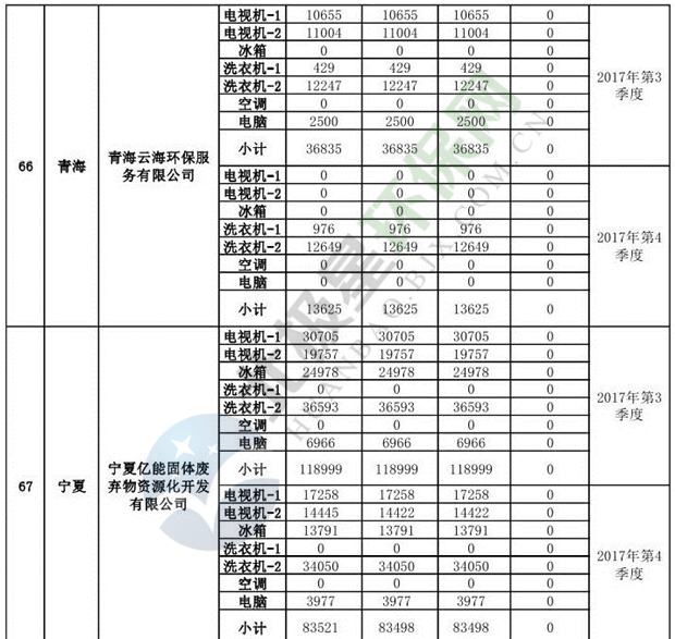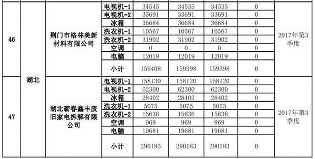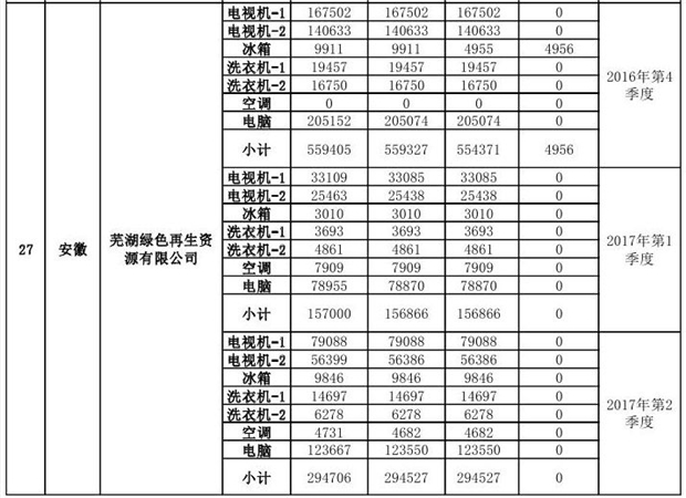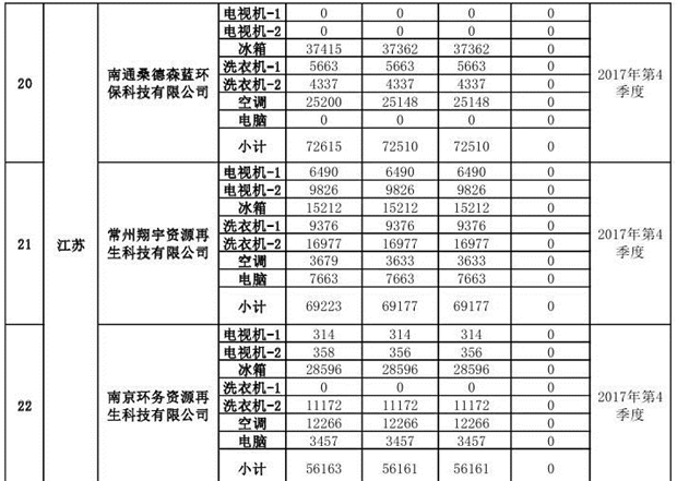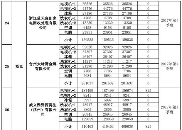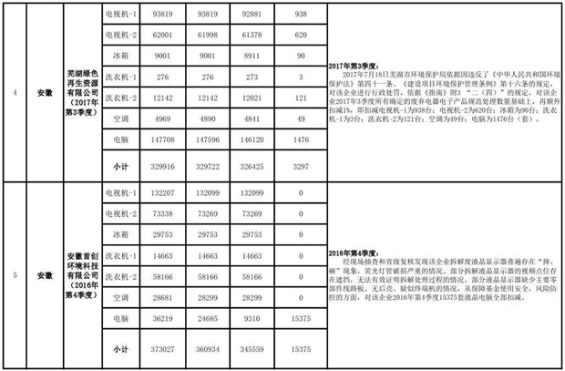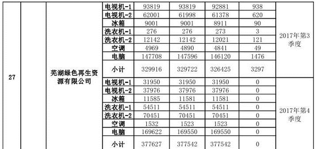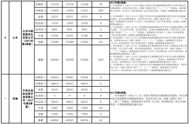 上述69家通過技術復核的企業(yè)申請廢電器規(guī)范拆解處理數(shù)量為26342953 臺(套);經(jīng)省級環(huán)保部門審核認定廢電器規(guī)范拆解處理數(shù)量為26306765臺(套),扣減36188臺(套);部固管中心通過技術復核擬確認廢電器規(guī)范拆解處理數(shù)量為26242476臺(套),扣減64289臺(套)(詳見附件)。