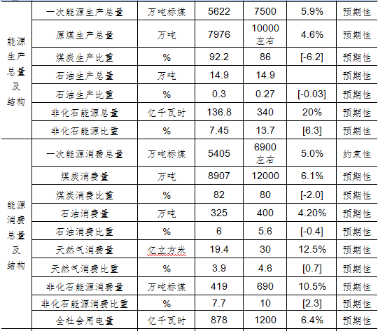 能源結(jié)構(gòu)進(jìn)一步優(yōu)化。非化石能源消費(fèi)總量占一次能源消費(fèi)比重達(dá)到10%左右、電量占全社會(huì)用電量的比重提高到20%,煤炭消費(fèi)比重降低到80%左右,天然氣(含煤層氣)消費(fèi)比重提高到4.6%。
