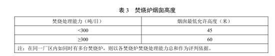 焚燒爐煙囪高度不得低于圖表中規(guī)定的高度,具體高度應根據環(huán)境影響評價結論確定。如果在煙囪周圍200米半徑距離內存在建筑物時,煙囪高度應至少高出這一區(qū)域內最高建筑物3m以上。
