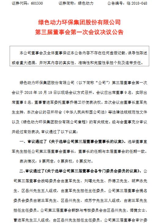 原標(biāo)題:綠色動力環(huán)保(01330)選舉直軍擔(dān)任公司董事長