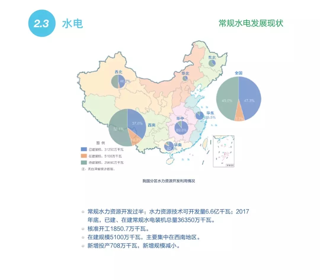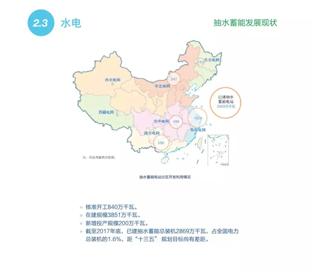 到2017年底,中國(guó)的常規(guī)水電總裝機(jī)容量達(dá)到3.6億千瓦,其中在建規(guī)模5100萬(wàn)千瓦。抽水蓄能在建規(guī)模為3851萬(wàn)千瓦,已建總裝機(jī)容量為2869萬(wàn)千瓦。