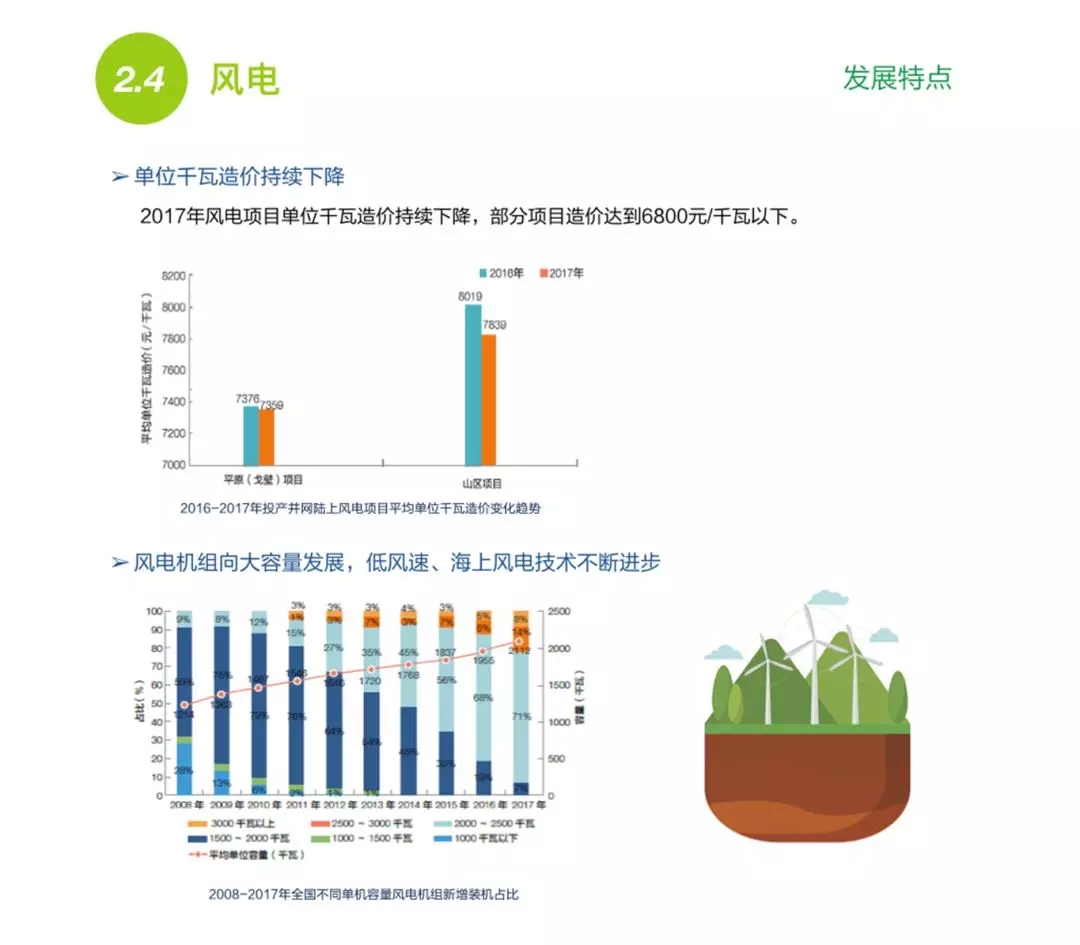 在風(fēng)電方面,去年我國(guó)核準(zhǔn)的陸上風(fēng)電和海上風(fēng)電達(dá)4958萬(wàn)千瓦,2017年投產(chǎn)風(fēng)電達(dá)到了1503萬(wàn)千瓦,累計(jì)并網(wǎng)裝機(jī)容量1.64億千瓦。棄風(fēng)現(xiàn)象得到了有效控制,風(fēng)電單位千瓦造價(jià)持續(xù)下降,2017年部分項(xiàng)目的造價(jià)已經(jīng)低于每千瓦6800元。