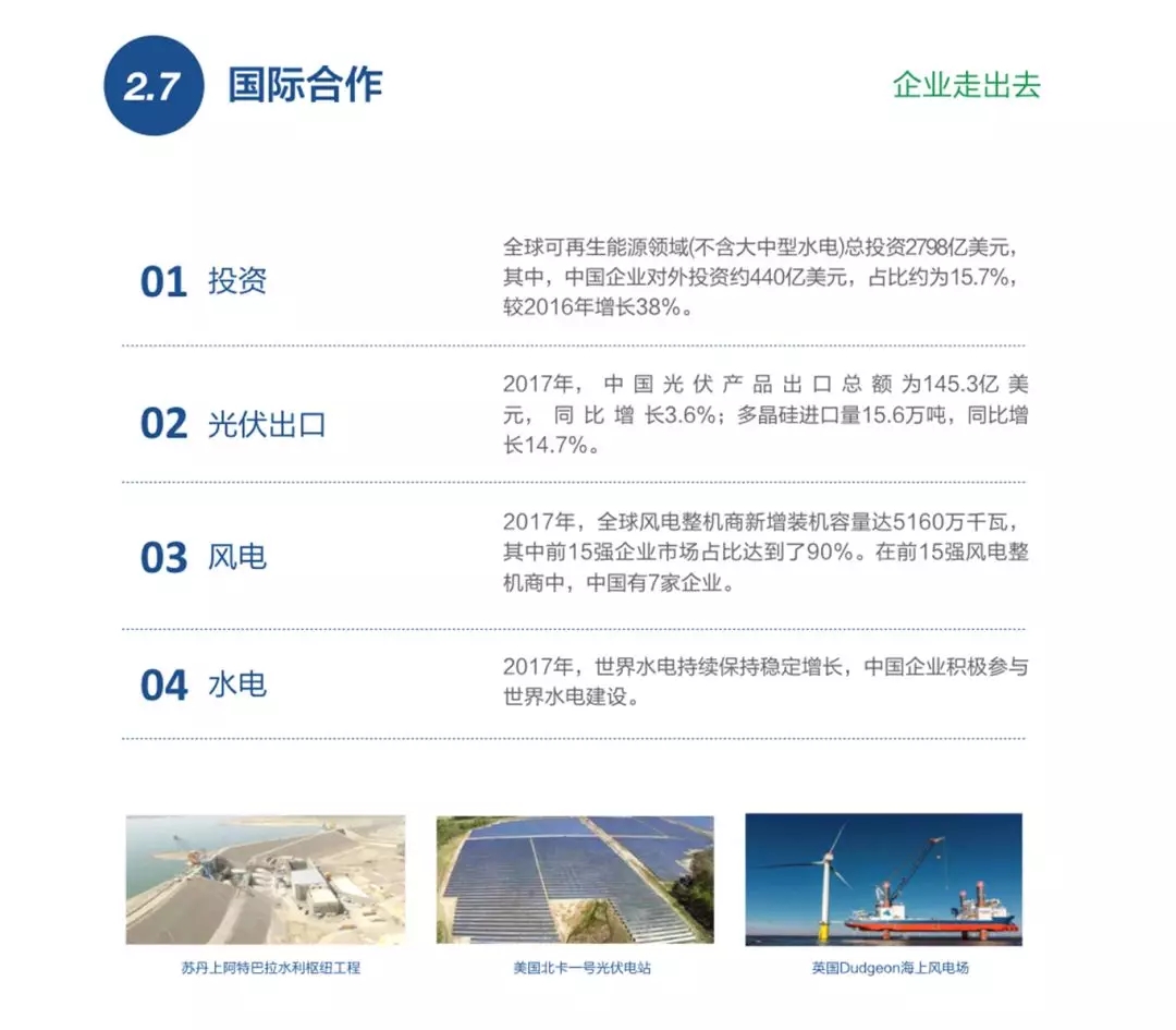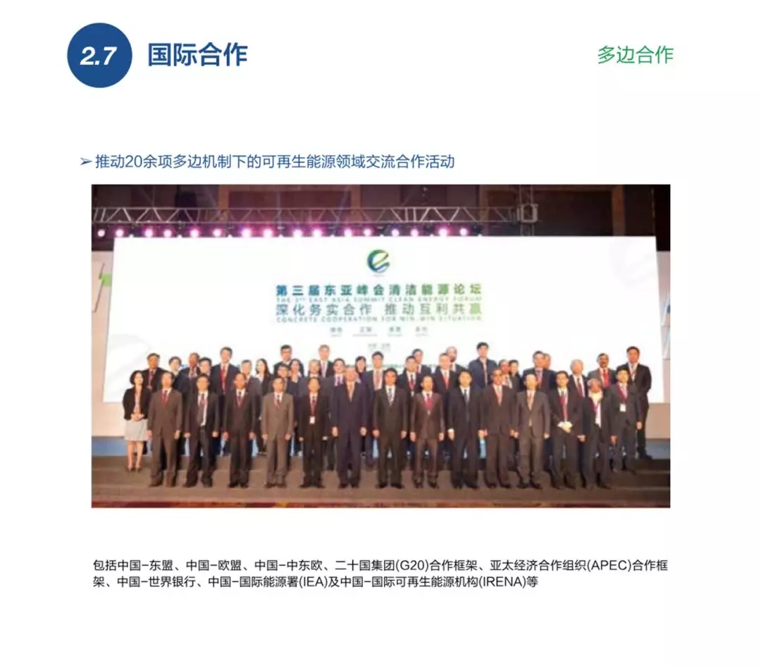 國(guó)際合作方面,去年國(guó)家能源局推動(dòng)了20余項(xiàng)多邊機(jī)制下可再生能源的領(lǐng)域交流互動(dòng),同時(shí)與40多個(gè)國(guó)家和地方政府簽署涵蓋可再生能源技術(shù)、能源效率、智能電網(wǎng)、電源開(kāi)發(fā)等方面的雙邊合作協(xié)議。