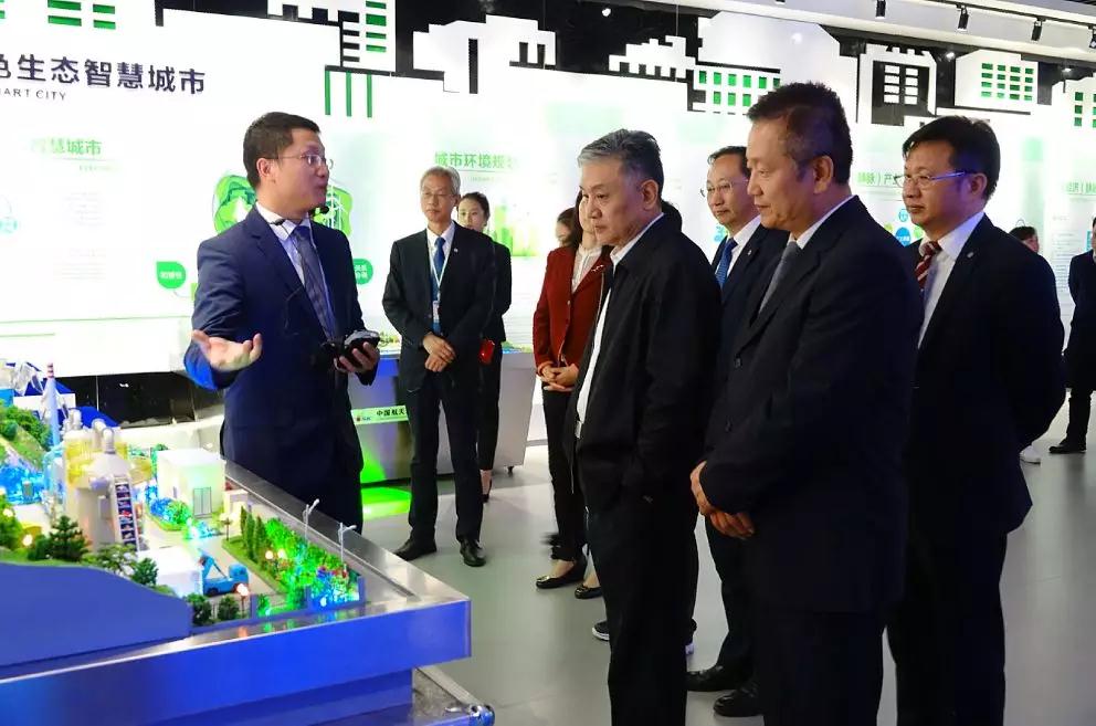 當(dāng)天,吳曉青一行參觀了航天凱天環(huán)保展示運(yùn)營中心,展廳運(yùn)用沙盤、VR互動(dòng)體驗(yàn)等多媒體手段,全方位展示公司在建設(shè)綠色生態(tài)智慧城市、綠色生態(tài)美麗鄉(xiāng)村、綠色生態(tài)工業(yè)園區(qū)以及綠色生態(tài)健康家庭方面的成就。