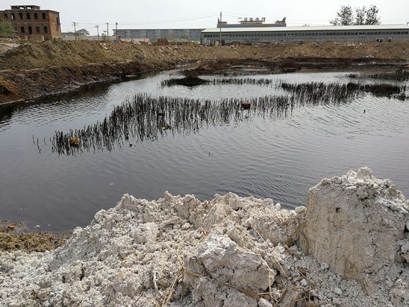 大城縣政府發(fā)布的《說明》顯示,兩滲坑均位于大城縣南趙扶鎮(zhèn),分別為原南趙扶磚廠滲坑和原化肥廠滲坑,系由旺村鎮(zhèn)村民李某某叔侄將廢酸傾倒進(jìn)坑塘所致。2014年3月,大城縣人民政府經(jīng)過調(diào)查比較,選定廊坊碧水源對化肥廠滲坑進(jìn)行治理。