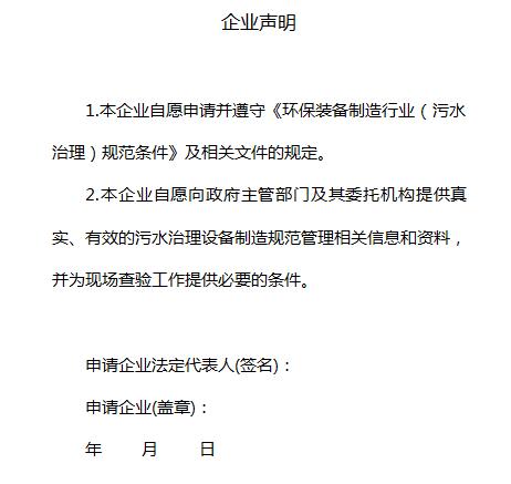 3.申請(qǐng)企業(yè)需編制《環(huán)保裝備制造行業(yè)(污水治理)規(guī)范條件申請(qǐng)書》(格式見附1),并按要求提供相關(guān)說明材料。各省級(jí)工業(yè)和信息化主管部門依據(jù)本規(guī)范條件,對(duì)申請(qǐng)材料進(jìn)行審查并提出推薦意見(格式見附2)。