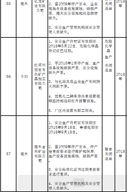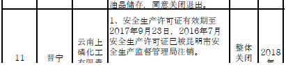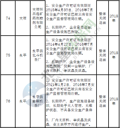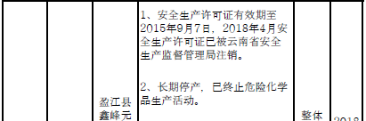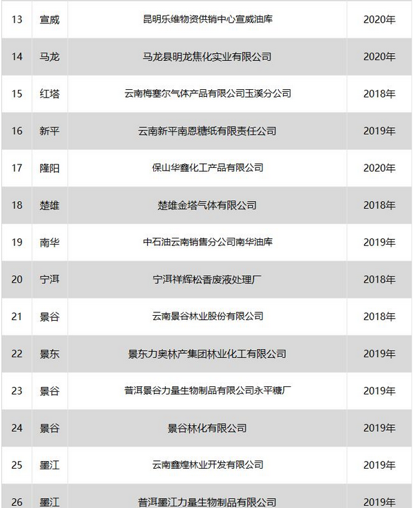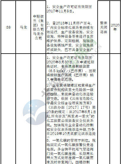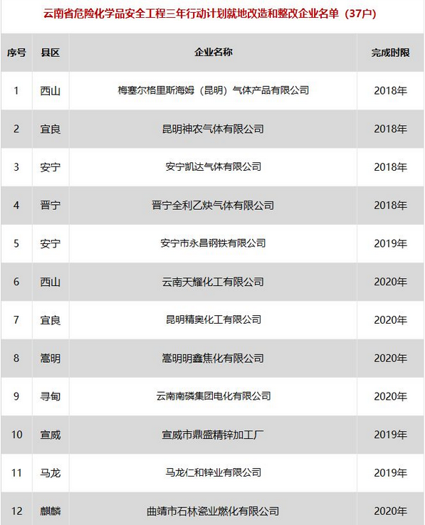 日前云南省應急管理廳發(fā)布了印發(fā)危險化學品安全工程三年行動計劃有關企業(yè)名單,明確關閉退出、就地改造、綜合整治的危險化學品生產(儲存)企業(yè)名單。