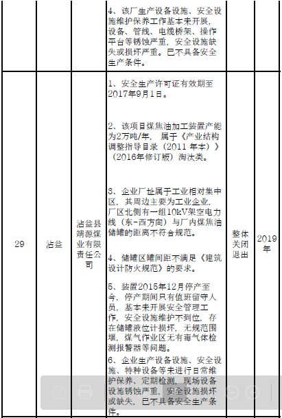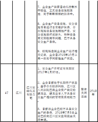 二、對91戶(詳見附件1)危險化學品生產(儲存)企業(yè)和部分生產裝置,雖不在城鎮(zhèn)人口密集區(qū),但由于不符合產業(yè)政策、不具備基本安全生產條件且無法整改的,實施關閉退出。其中: