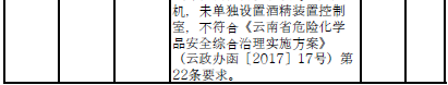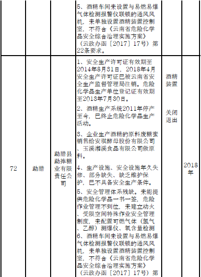 三、對37戶(詳見附件2)內部安全距離不足、工藝技術和裝備水平低的危險化學品企業(yè)實施就地改造。其中:昆明市9戶,曲靖市5戶,玉溪市2戶,保山市1戶,楚雄州2戶,普洱市11戶,西雙版納州2戶,大理州1戶,德宏州1戶,怒江州1戶,臨滄市2戶。