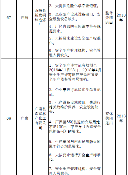 附件:1.云南省危險化學品安全工程三年行動計劃關閉退出企業(yè)(裝置)名單(分地區(qū))