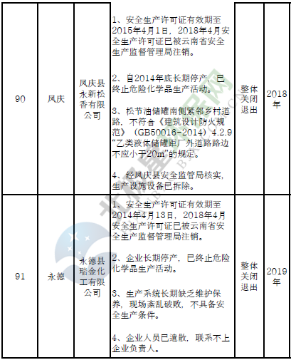 對91戶危險化學品生產(儲存)企業(yè)和部分生產裝置,雖不在城鎮(zhèn)人口密集區(qū),但由于不符合產業(yè)政策、不具備基本安全生產條件且無法整改的,實施關閉退出。