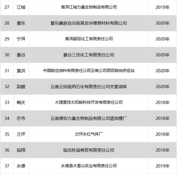 2.云南省危險化學品安全工程三年行動計劃就地改造和整改企業(yè)名單(分地區(qū))