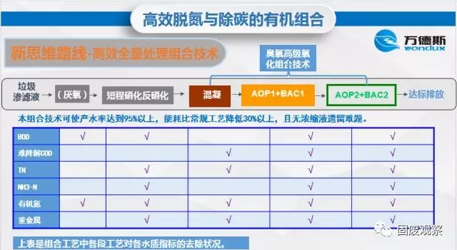 南京萬德斯環(huán)??萍脊煞萦邢薰旧虾7止究偨?jīng)理陳建湧介紹,在滲瀝液脫碳技術(shù)上,萬德斯環(huán)保采用“厭氧+高效生化+納濾+臭氧高級氧化AOP(Advanced Oxidation Process)” 為主的工藝,在高效脫氮中,利用短程硝化技術(shù),節(jié)省供氧量25%、節(jié)省反硝化碳源40%、減少污泥生成量50%、減少投堿量、縮短反應(yīng)時間。在滲瀝液高效全量處理中,組合利用 “厭氧+短程硝化反硝化+臭氧高級氧化(混凝+AOP1+BAC1+AOP2+BAC2)”技術(shù),能使產(chǎn)水率達(dá)到95%以上,且無濃縮液遺留難題。除技術(shù)創(chuàng)新外,陳建湧總經(jīng)理認(rèn)為,提倡垃圾干濕分類,采取各種有效措施減少各種好水分包括雨水進(jìn)入垃圾,以及垃圾堆場等,對降低滲瀝液處理成本具有非常重要的意義。