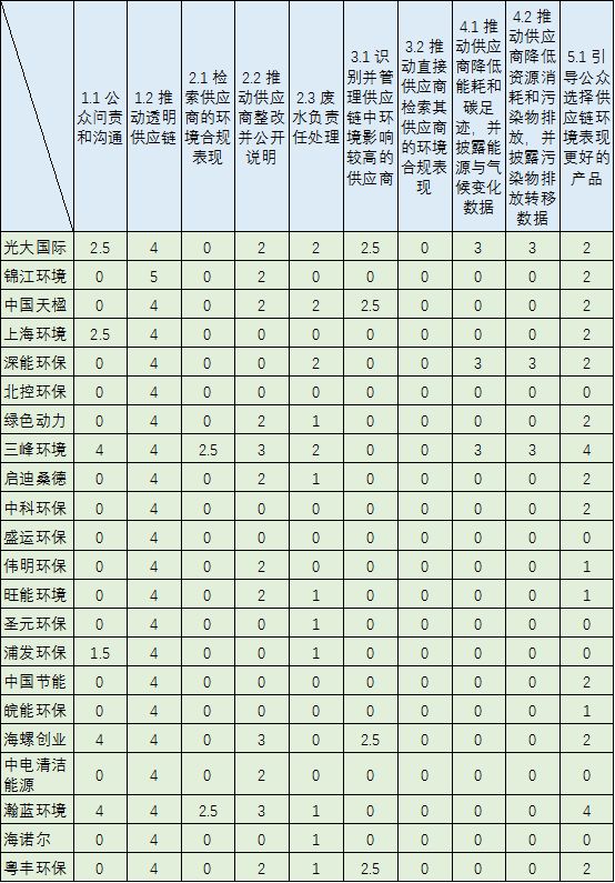 本期CITI評(píng)分均以垃圾焚燒品牌信息公開渠道所獲得的數(shù)據(jù)作為依據(jù),旗下的垃圾焚燒廠作為一級(jí)供應(yīng)商,評(píng)價(jià)標(biāo)準(zhǔn)涵蓋5個(gè)方面(溝通與透明、合規(guī)性與整改行動(dòng)、延伸綠色供應(yīng)鏈、節(jié)能減排、推動(dòng)公眾綠色選擇),層層遞進(jìn),在有效量化評(píng)價(jià)的同時(shí),也是可供品牌參考的行動(dòng)路線。