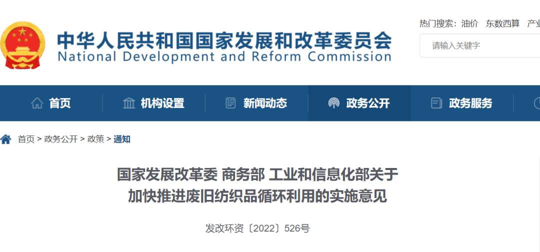 近日,國家發(fā)展改革委、商務(wù)部、工業(yè)和信息化部聯(lián)合印發(fā)《關(guān)于加快推進(jìn)廢舊紡織品循環(huán)利用的實施意見》,提出到2025年,廢舊紡織品循環(huán)利用體系初步建立,循環(huán)利用能力大幅提升,廢舊紡織品循環(huán)利用率達(dá)到25%,廢舊紡織品再生纖維產(chǎn)量達(dá)到200萬噸。到2030年,建成較為完善的廢舊紡織品循環(huán)利用體系,生產(chǎn)者和...