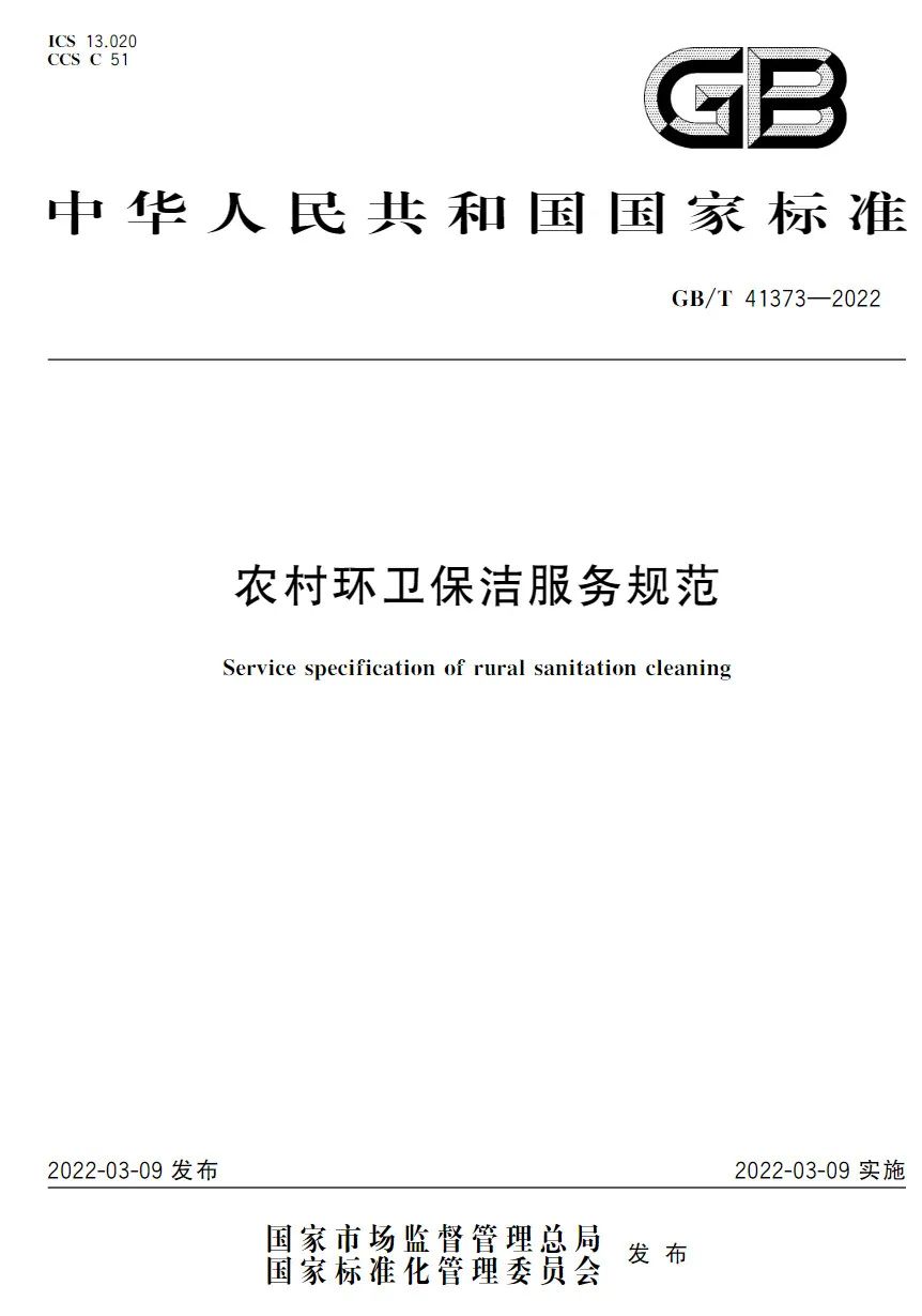 國家市場監(jiān)督管理總局、中國國家標(biāo)準(zhǔn)化管理委員會近日發(fā)布了國家標(biāo)準(zhǔn)《農(nóng)村環(huán)衛(wèi)保潔服務(wù)規(guī)范》(以下簡稱《規(guī)范》),2022年3月9日發(fā)布實施。 《規(guī)范》聚焦“戶分類-村收集-鎮(zhèn)轉(zhuǎn)運-縣處理”一體化垃圾收運處置體系中的前端環(huán)節(jié),以湖北農(nóng)村環(huán)衛(wèi)保潔服務(wù)實踐為基礎(chǔ),結(jié)合全國東中西部主要省份環(huán)衛(wèi)保潔服務(wù)實際,重...