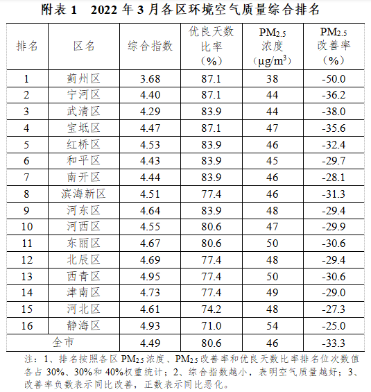 一、環(huán)境空氣質(zhì)量總體狀況 2022年3月,我市環(huán)境空氣質(zhì)量綜合指數(shù)4.49,同比下降22.2%;達(dá)標(biāo)天數(shù)25天,同比增加13天;達(dá)標(biāo)比例為80.6%,同比上升41.9個百分點;無重污染天,同比減少3天。PM2.5、PM10、NO2和CO濃度同比下降,降幅分別為33.3%、22.6%、21.3%和7....